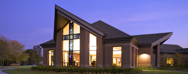 The Marywood Holy Family Chapel was dedicated on December 18, 2010 and is open to all denominations. Floor to ceiling windows provide sweeping views of Marywood's beautiful grounds and surround the altar cross, creating a "floating" and inspiring visual centerpiece. The stained glass feature adds a transcendental quality to the chapel, illuminating the room in hues of blue.